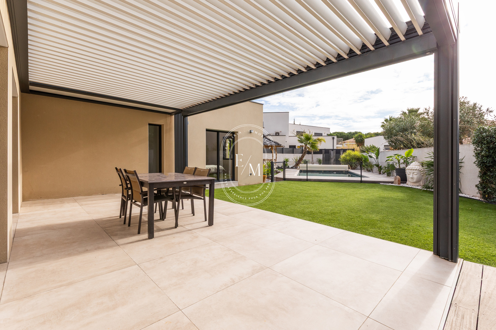 Agde (34300)L’agence EMPEIRIA a le plaisir de vous présenter à la vente cette superbe villa contemporaine de 142 m², construite en 2022, alliant design moderne et ambiance exotique.