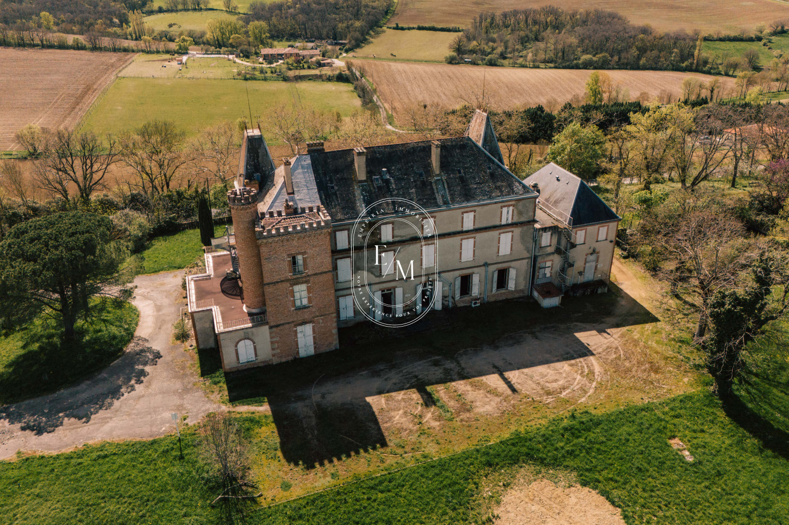 Verfeil (31590)Venez découvrir ce magnifique château situé à seulement 15 minutes de Verfeil. Vous accéderez à cette propriété de 1154 m² par une terrasse de 64 m². Le rez-de-chaussée de 469 m² offre des prestations remarquables qui ne demandent qu'à être mises en valeur : carreaux de ciment, moulures, cheminées, grandes menuiseries... Un magnifique escalier dessert les étages, tandis qu'un second escalier et un ascenseur à remettre en état offrent des options supplémentaires pour se déplacer. Une cave de 50 m² accessible depuis l'entrée complète ce niveau.
