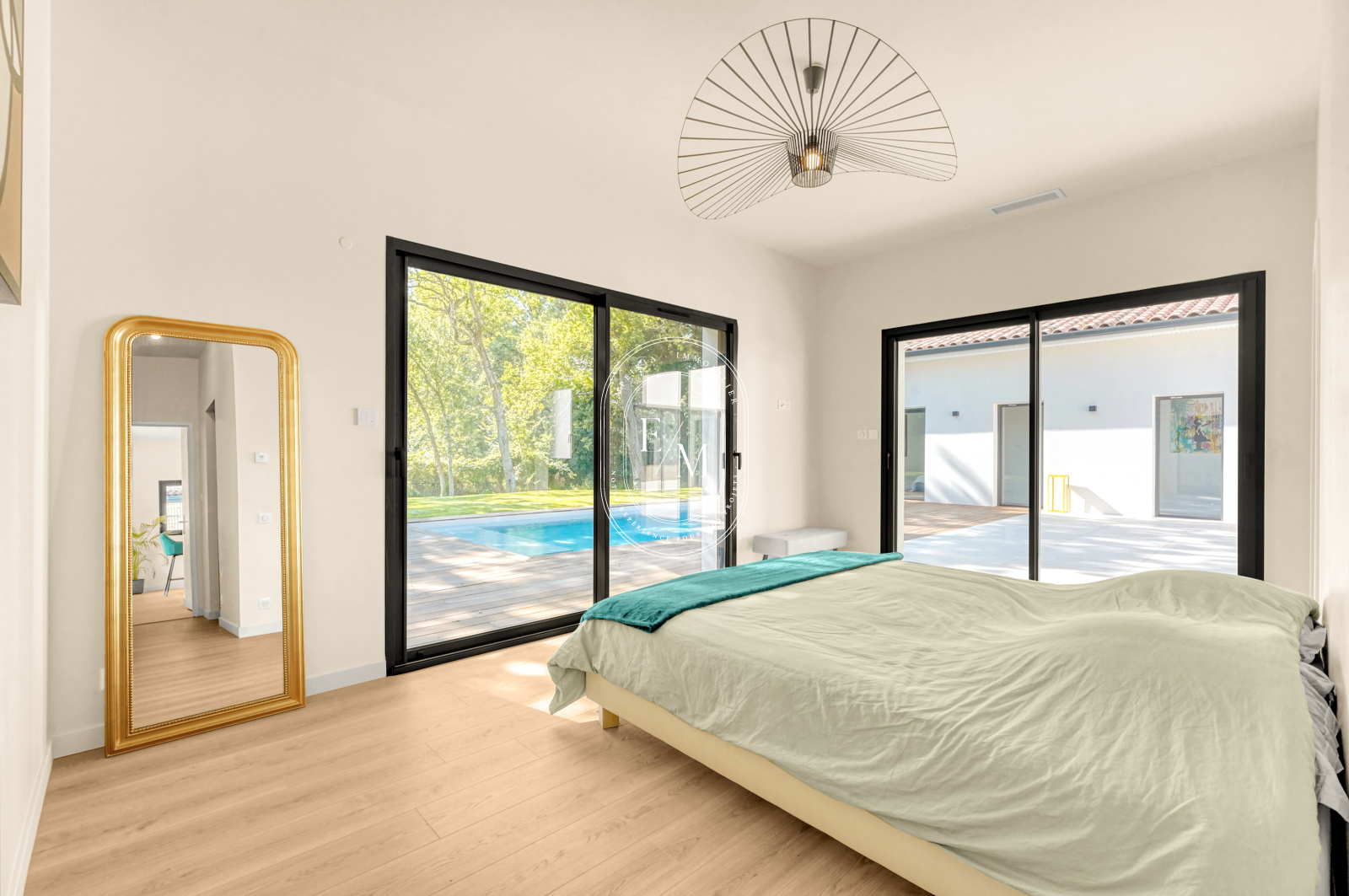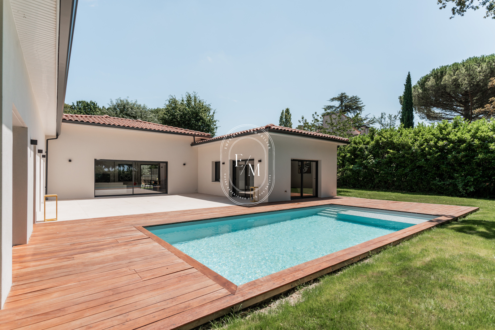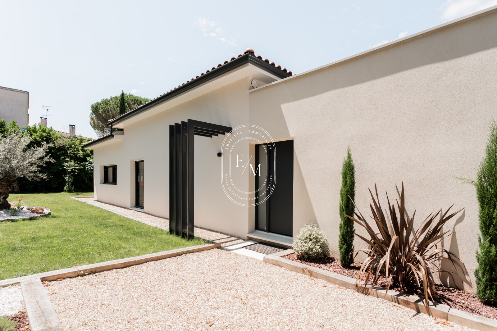 Castelmaurou (31180)Cette magnifique villa aux prestations haut de gamme nichée sur une parcelle de1291m² vous offre un véritable havre de paix au cœur de la nature. À l'abri des regards, elle est l'endroit idéal pour ceux qui recherchent tranquillité et intimité. Avec ses 167m² habitables, cette demeure propose un espace généreux et fonctionnel pour une qualité de vie incomparable. Vous serez rapidement conquis par sa décoration minimaliste avec une touche artistique.