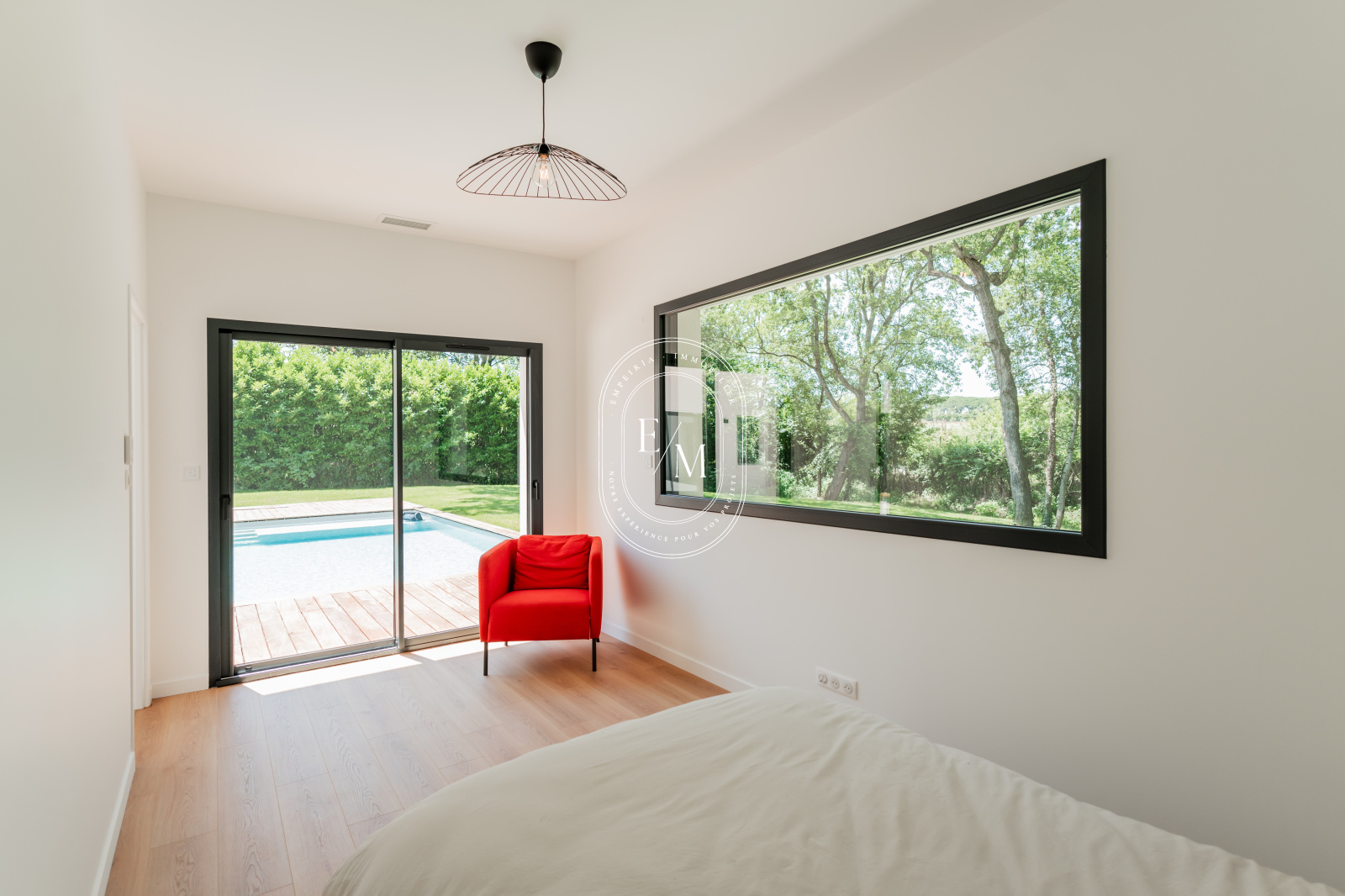 D’un côté, la suite parentale avec sa salle de bains attenante offre un espace de repos privilégié. De l’autre côté de la villa, les trois autres chambres offrent confort et praticité pour accueillir famille et amis.